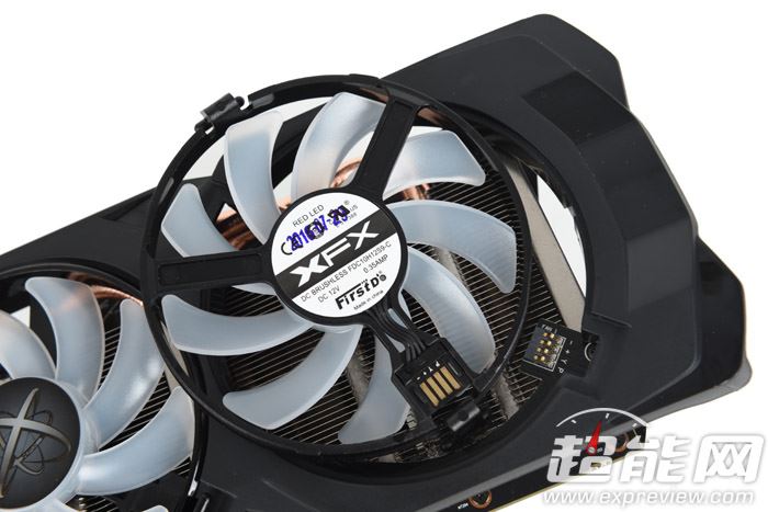 讯景rx 470 深红纪念版标配的是两把红光风扇,这两把风扇可以轻松拆卸,捏下两边的卡扣就可把风扇拆下来,讯景还有白色和蓝色的风扇可供选购,有需要的玩家可自行购买更换上去。