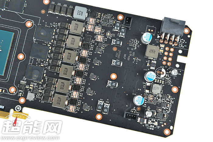 gtx 1060 ftw+gaming采用了6+1相供电,每一相对应一个整合的mosfet,而不是一上一下的排列方式,其中5相为gpu核心供电1相为显存供电,相比gtx 1080公版还要多出一相供电,同时在pcb上有大量钽聚合物电容,使显卡工作时更稳定。gtx 1060 ftw+gaming的pcb设计非常到位,本来定位中端的gtx 1060,却采用定位旗舰的gtx 1080公版规范pcb,并且只要简单补全了空焊位的相数,就能同时达到了用料充足和稳定性更强的目的。