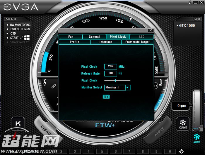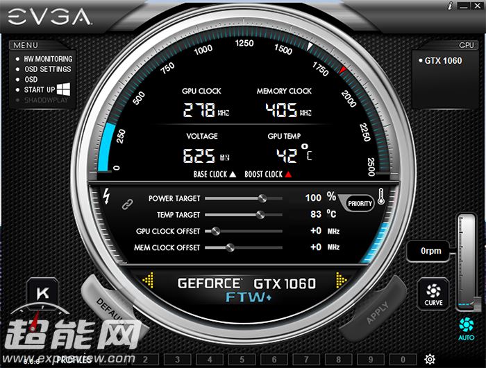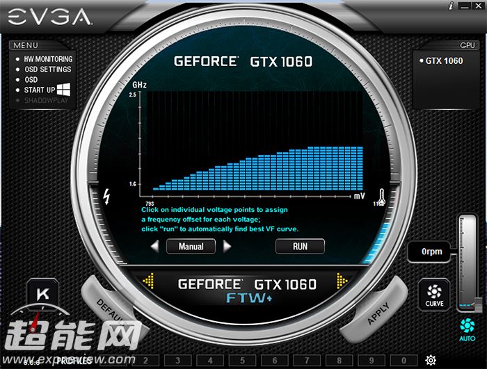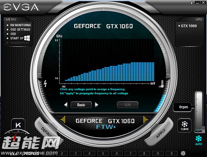 precision xoc软件提供了基本仪表、固定线性关系等几种超频模式,同时结合evga的precision和oc scanner软件可以更好地超频,另外precision xoc支持osd屏显、风扇转速与温度关系调节等功能,有兴趣的玩家可以深入研究下。