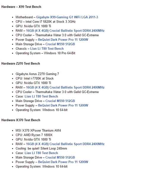 具体如何选择呢?eteknix网站就做了三款高端处理器搭配gtx 1080 ti的对比测试,core i7-7700k和ryzen 7 1800x入选了,但x99平台他们选择的是core i7-5820k,这是上一代x99平台中最佳性价比的一款,6核12线程,也是三款处理器中唯一支持四通道ddr4内存的,官方建议价为389美元,比329美元的core i7-7700k高一些,但比499美元的ryzen 7 1800x便宜些。