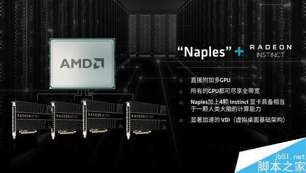 未来,naples可以搭配自家的radeon instinct,执行各种高性能计算任务,支持高速vdi(虚拟桌面基础架构)。
