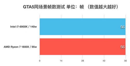 《gta5》是一款深受大家喜爱的游戏,我也是其中一份子。但是这游戏可不好跑,开了4k分辨率,gtx 1080仅仅跑了56帧,你想想。当然如您所见,在这款游戏同场景测试当中,两款处理器表现几乎完全一样。
