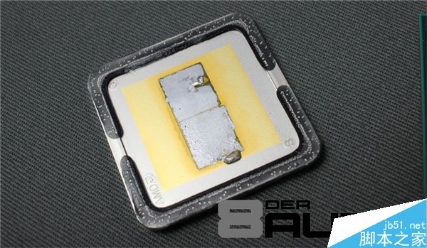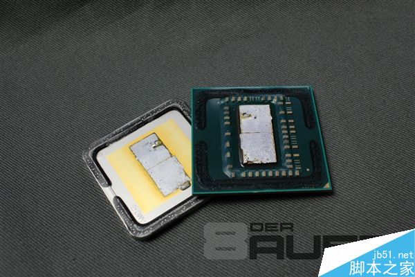 核心与顶盖之间使用的依然是焊料类(solder)材质,具体来说是铟焊料(indium solder),据说是一种很贵的导热材质。
