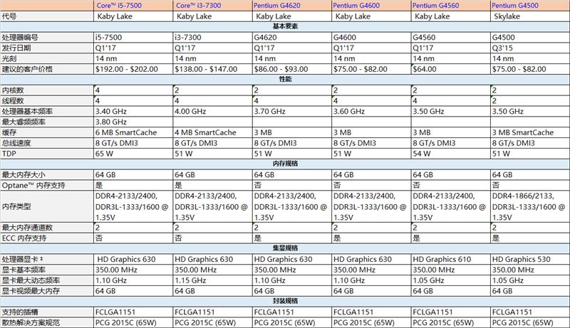 g4560引入了ht超线程后,成为了双核四线程的cpu,加上原本3mb l3缓存,默认主频为3.5ghz,内置有gt1级别集显hd graphics 610集显,tdp为54w,官方给出的指导售价64美金(折合人民币440元)。从硬件规格上来看,与core i3级别的i3-6100规格相当接近,抛去了对性能影响不大l3缓存大小,以及不大堪用的hd graphics 610集显,还有就是奔腾g4560是砍掉了争议性非常大的avx2指令集,然后两者真的没什么区别了。当然,g4560之上还有主频、集显更好的g4600、g4620,难道这是奔腾崛起?