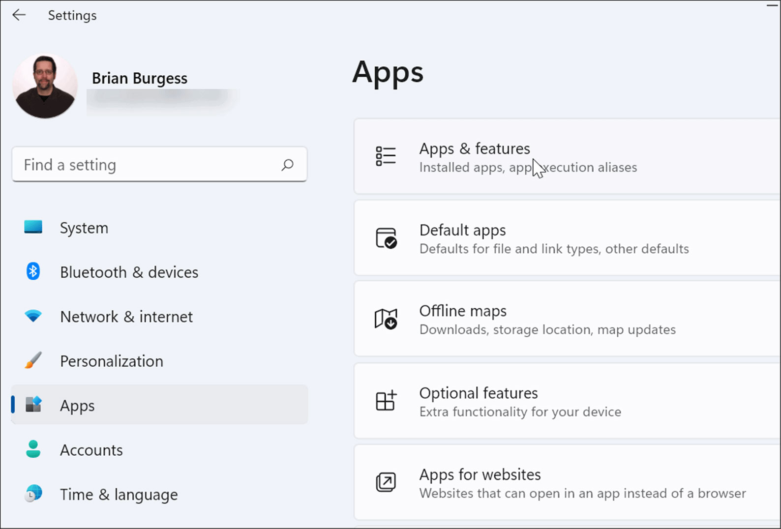 当设置打开时,单击左侧列表中的应用程序和右侧的应用程序和功能。