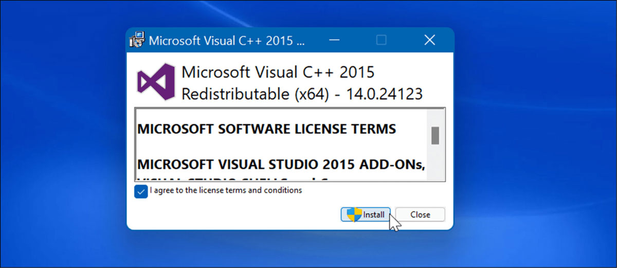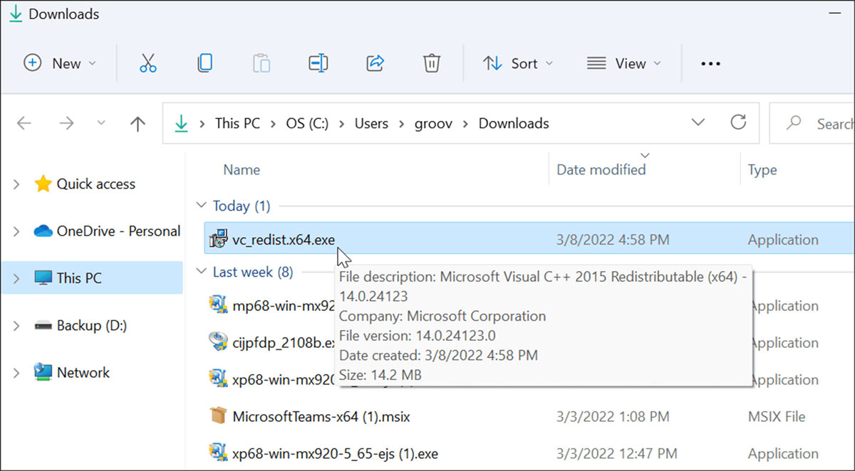 现在,打开包含您下载的 microsoft visual c++ 文件的文件夹,然后双击运行它。