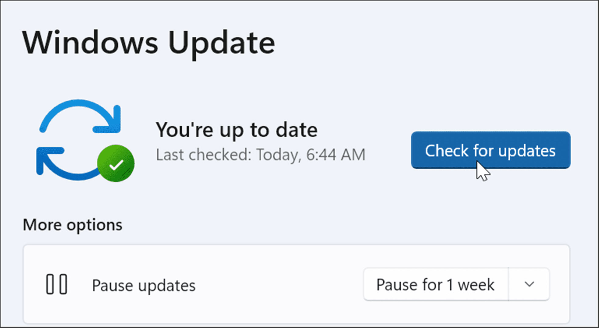 要检查更新,请打开“开始”>“设置”>“windows 更新”,然后单击“检查更新”按钮以更新 windows。