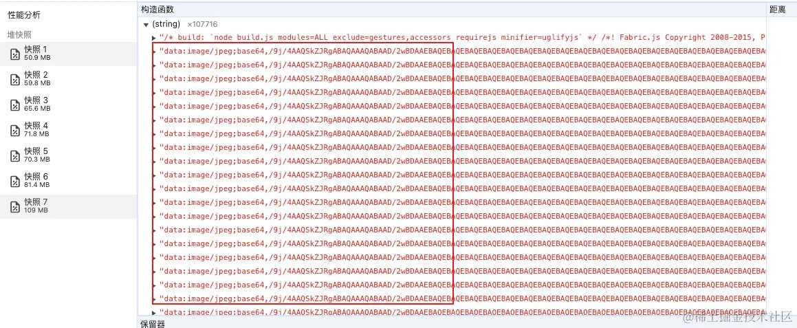 在新的快照中对比,发现canvas生成的图片uri会随着调用次数增加,这正是内存不断增加的罪魁祸首