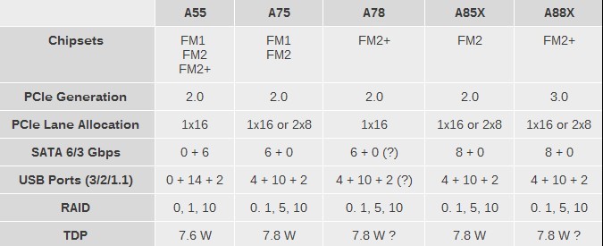 amd三代apu采用了socket fm2+处理器接口,三代apu处理器需要搭配a88x、a78、a55芯片组的socket fm2+接口主板,其中a55属于最入门级主板,而a88属于最高规格主板,以下是a88x、a78、a55主板的细节区别。