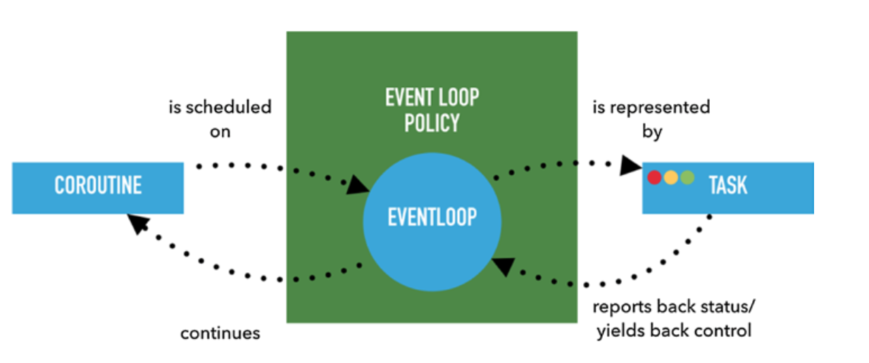 事件循环是 asyncio 的核心,异步任务的运行、任务完成之后的回调、网络 i/o 操作、子进程的运行,都是通过事件循环完成的,通俗来讲,事件循环所做的就是等待事件发生,然后再将每个事件与我们已明确与所述事件类型匹配的函数进行匹配。