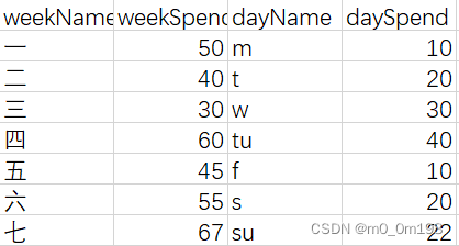 df = {'weekname': week1, 'weekspend': weekspend, 'dayname': day1, 'dayspend': dayspend}