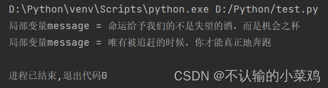 message = "命运给予我们的不是失望的酒,而是机会之杯" # 局部变量
