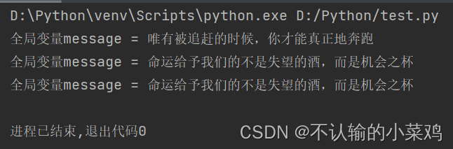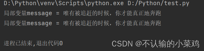 message = "唯有被追赶的时候,你才能真正地奔跑" # 全局变量