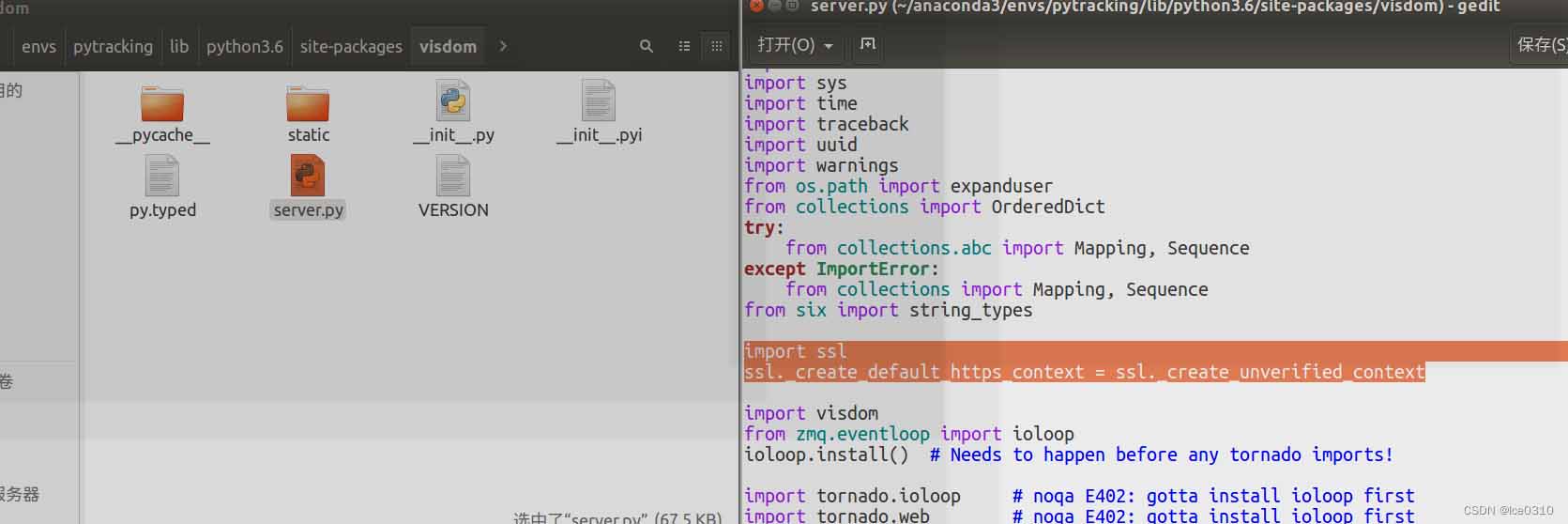 进入到安装visdom的路径下,修改 server.py文件