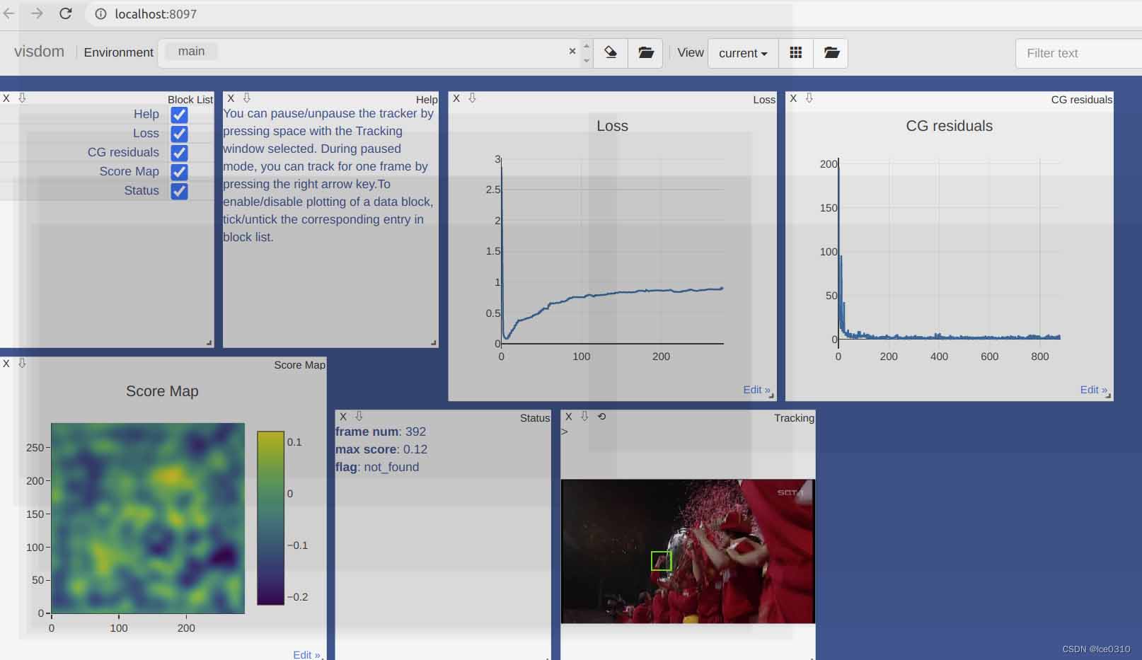 运行pytracking代码使用到visdom进行可视化,然而全蓝色,不显示内容