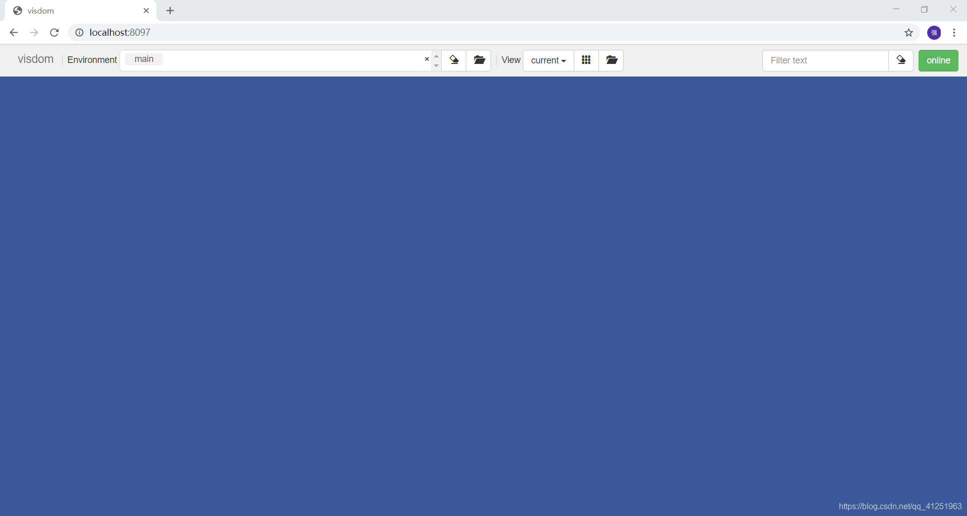 安装成功后,适应命令开启visdom服务,该服务基于web,默认使用8097端口