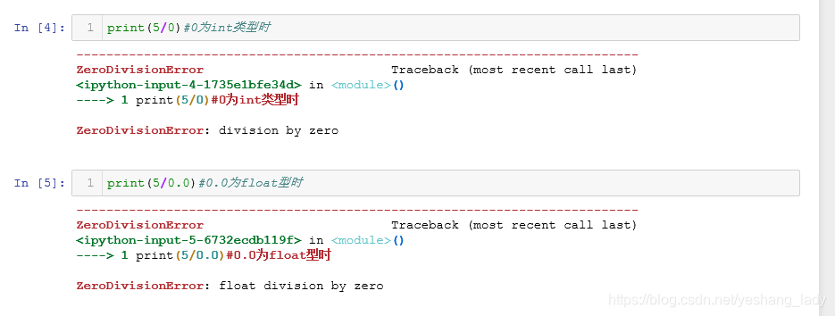 - 当分母0的数据类型为内置数据类型时,可以触发zerodivisionerror异常