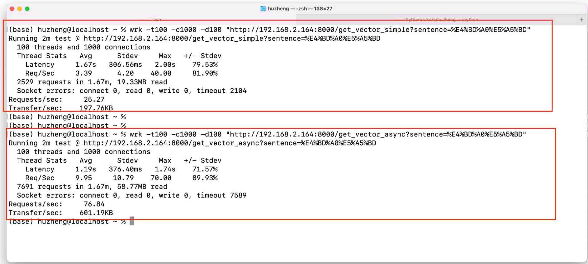 我把这个给技术,技术那边也基本是满意了。这样算下来,我平均一个句子转向量的时间大概需要13ms。这个其实已经非常高了。