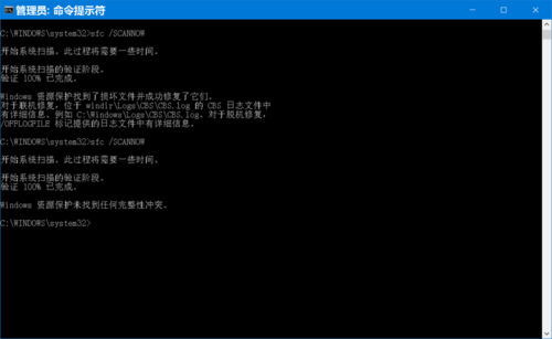 在管理员命令提示符窗口中输入sfc /scannow命令,按下键盘上的回车键,待其运行完成,显示资源保护未找到任何完整性冲突即可。