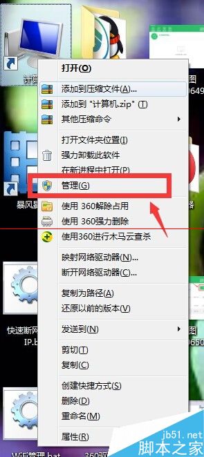 1、鼠标右键计算机(或者我的电脑),在弹出的选项卡中选择【管理】