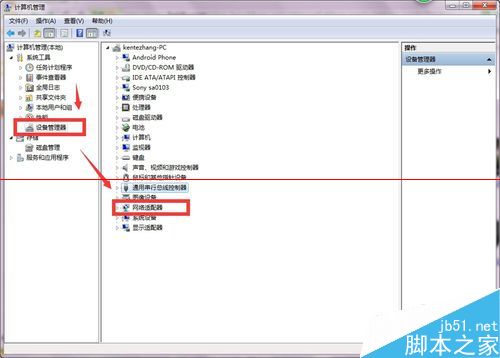 2、在管理选项卡中依次双击打开【设备管理器】——【网络适配器】