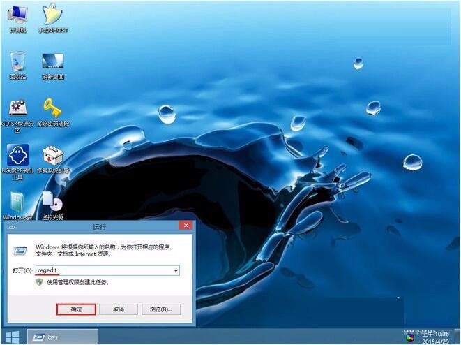 2、打开pe系统后,按下“win+r”组合键进入运行窗口,直接输入“regedit”指令,按下确定按钮,如下图所示: