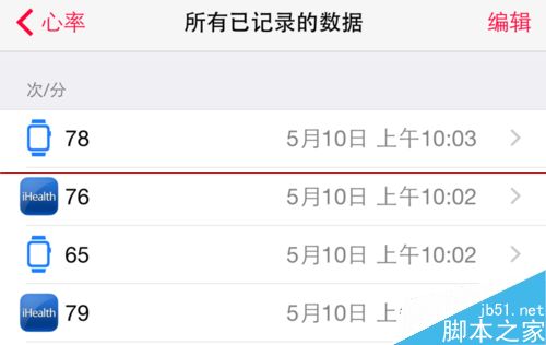 5、在 iphone 上可以通过健康应用,查看所有的心率测量数据。手表在平时会每隔10分钟测量一次。
