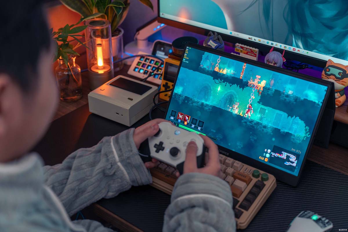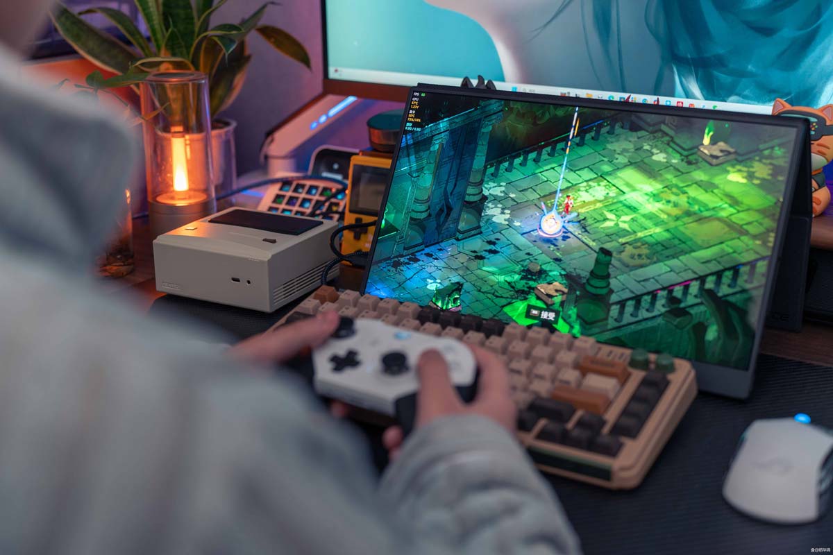 个人比较推荐的场景是将 ayaneo am01 接驳电视,作为播放器使用。想玩 3a 大作则通过串流的形式进行。游戏运行在主力机上,输出画面在客厅电视,大屏与流畅兼得,拿个无线手柄就可以躺沙发上畅玩了。