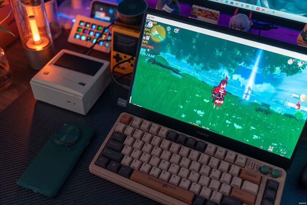 原神 1080p 低画质,草原场景保持 50fps 左右,玩是能玩,但整体算不上太出色。
