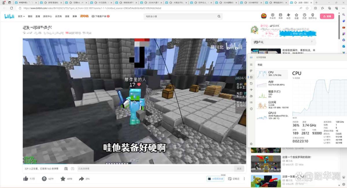 作为上网工具,打开 10 个页面同时播放,cpu 占用 36%,内存占用 60%。虽然测试过程不算太严谨,但也基本能判断出主机性能。