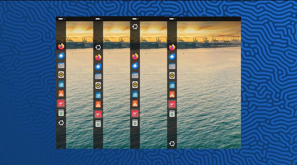 除了居中应用图标外,你还可以在 dock 扩展到屏幕边缘的情况下,移动「显示应用」(九点图标或 ubuntu logo) 的位置,共 4 种不同的左侧面板布局。接下来,本文将详细介绍如何启用这一实用功能。