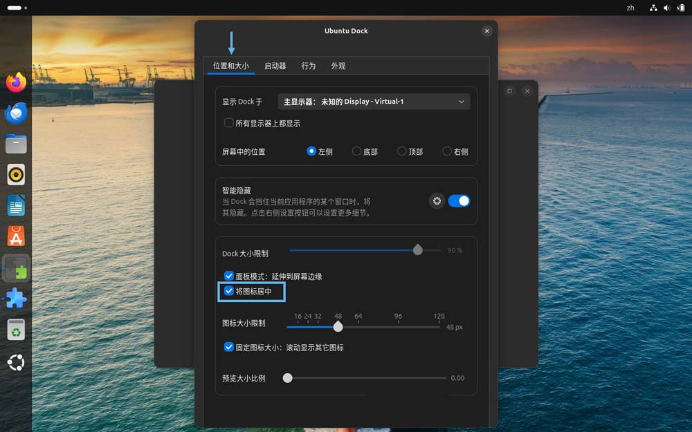 从 ubuntu 23.10 版本起,ubuntu 引入了一项新功能,可以在「面板模式」下,将左侧 dock 面板的应用图标居中显示。