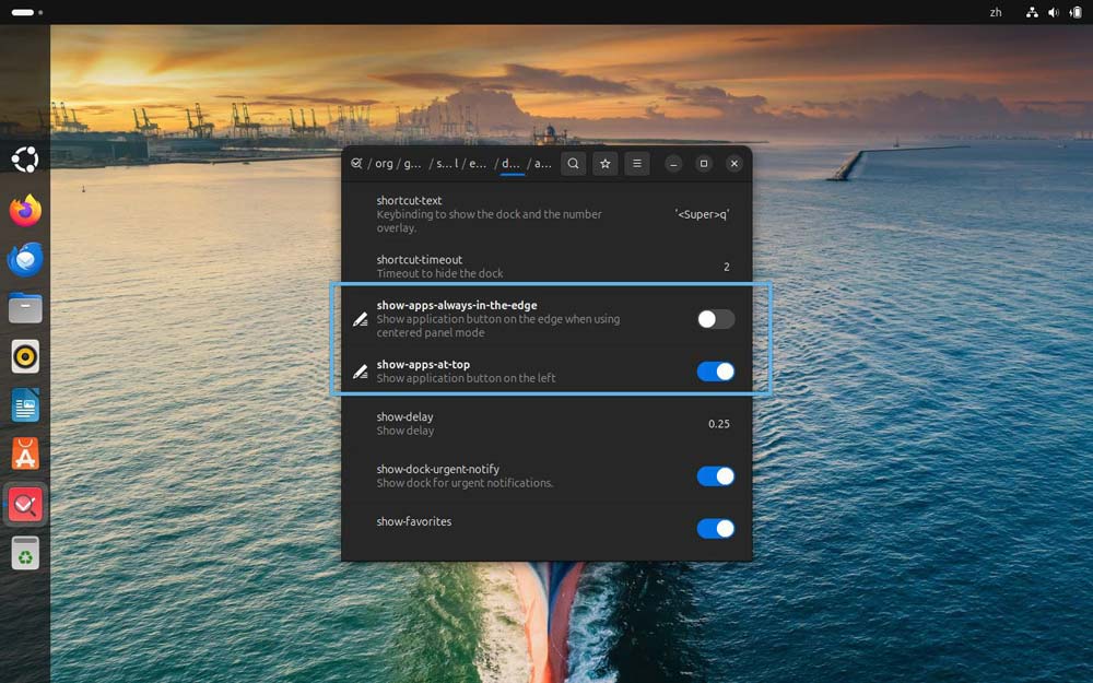 - show-apps-at-top:将「显示应用」图标显示在顶部。