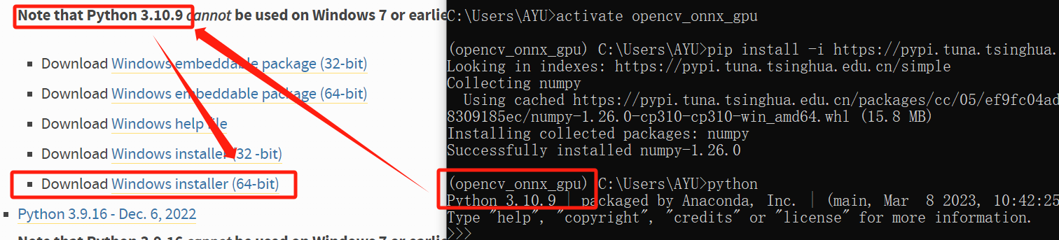 conda create -n opencv_onnx_gpu python=3.10.9 -y