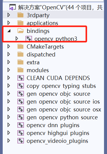- 确保在解决方案的bindings这个目录下有opencv_python3,否则即使编译成功仍然不能使用cuda加速。