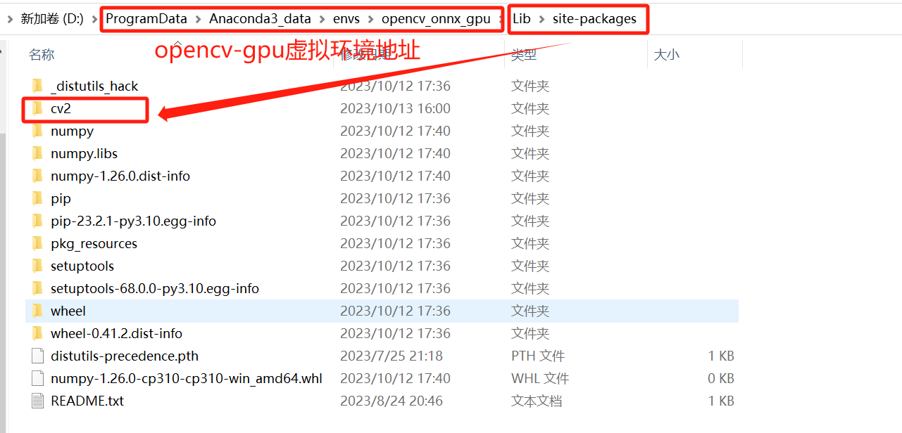 同时,在虚拟环境中,可以在路径lib\site-packages下看到cv2文件夹