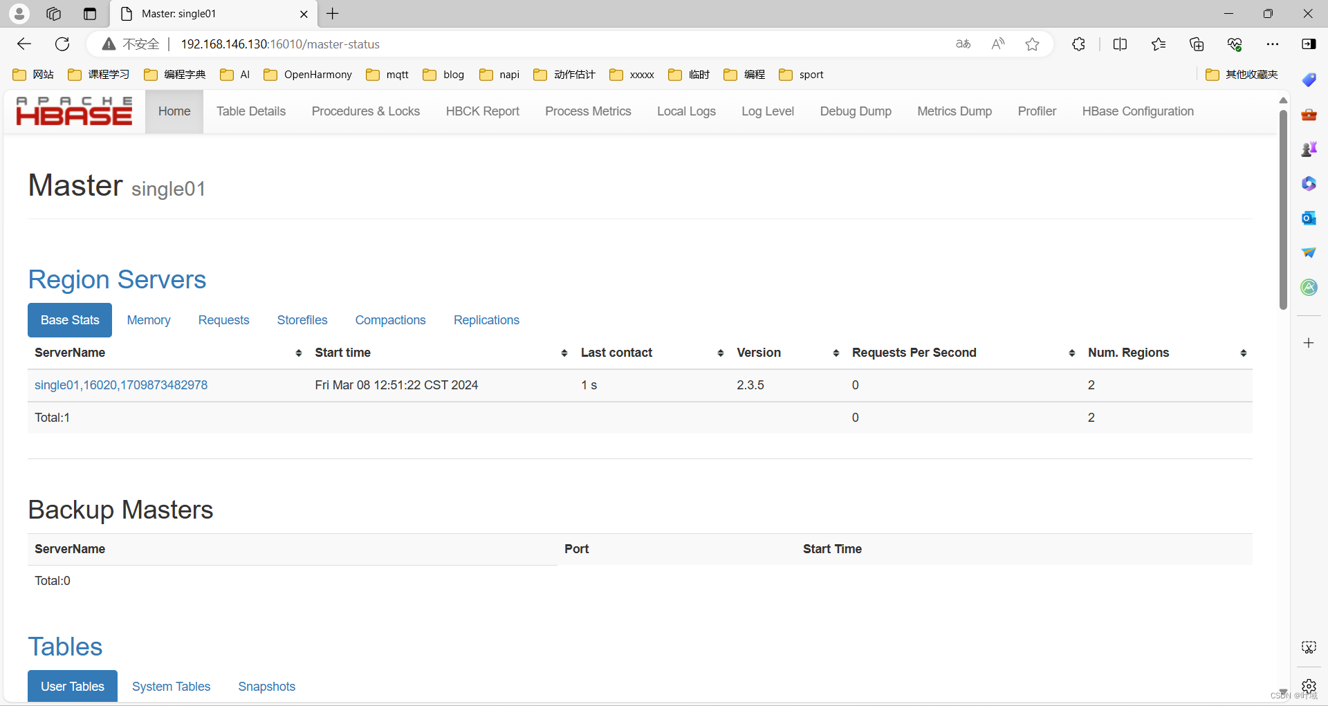 放在浏览器查看即可http://192.168.146.130:16010/master-statushbase master的web ui界面展示: