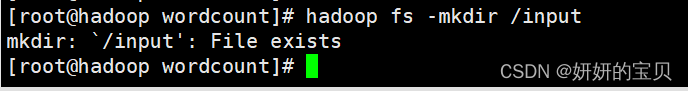 [root@hadoop wordcount]# hadoop fs -mkdir /input