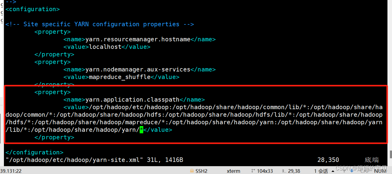 [root@hadoop wordcount]# vim /opt/hadoop/etc/hadoop/yarn-site.xml