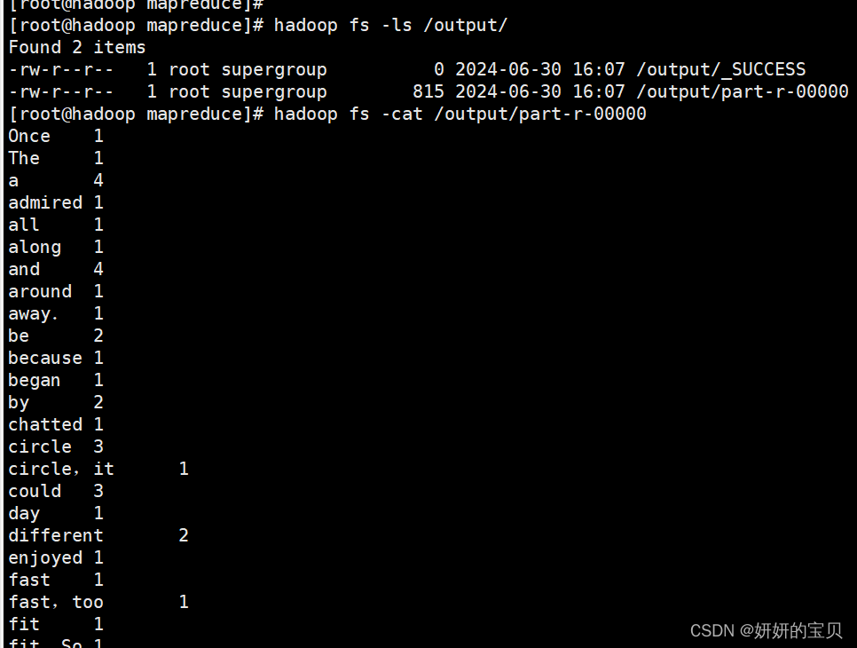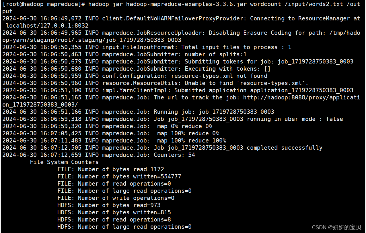 [root@hadoop mapreduce]# hadoop jar hadoop-mapreduce-examples-3.3.6.jar wordcount /input/words2.txt /output