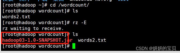 [root@hadoop wordcount]# hadoop fs -put /wordcount/words2.txt /input
