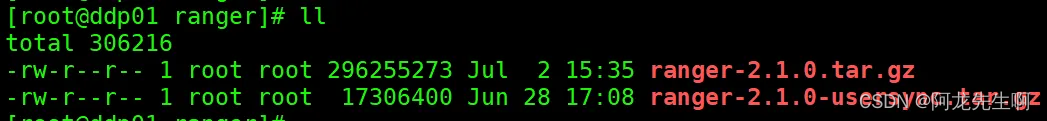 将ranger-usersync安装包集成到ranger组件中重新打包,如下是ranger admin包和ranger-usersync包。