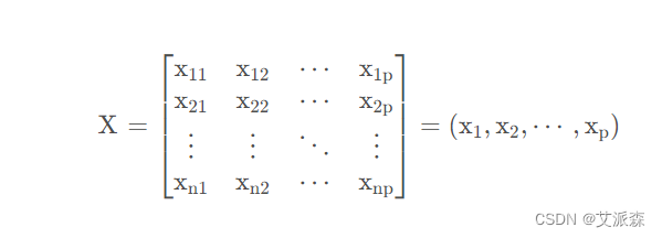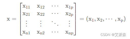 假设有 n nn 个样本,p pp 个指标,则可构成大小为 n × p n\times pn×p 的样本矩阵 x xx: