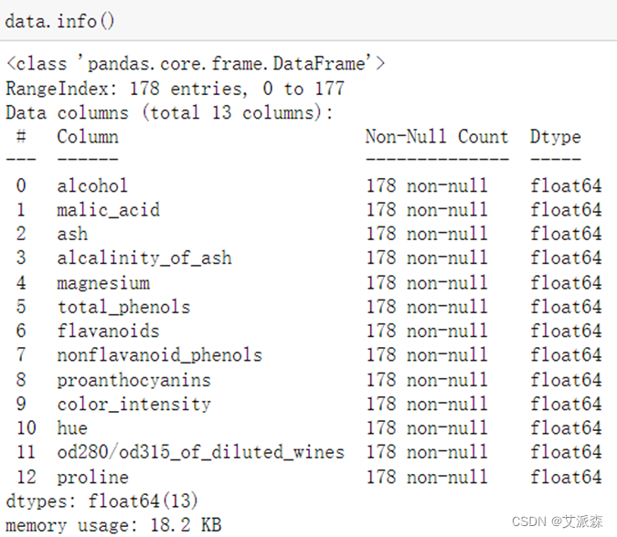 从结果中可以看出数据集没有缺失值且都为浮点数类型。