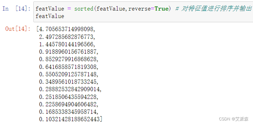 featvalue = sorted(featvalue,reverse=true) # 对特征值进行排序并输出