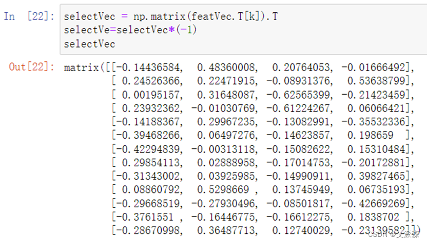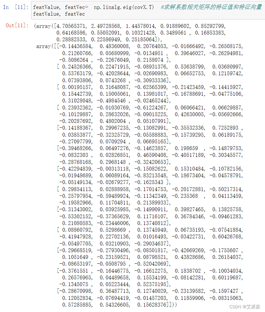 featvalue, featvec= np.linalg.eig(covx.t) #求解系数相关矩阵的特征值和特征向量