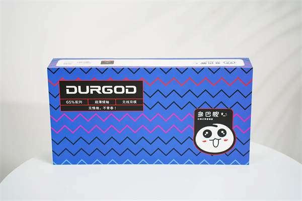 键盘的背面设计简洁而不失质感,采用了与正面相同的铝合金材质。四周设有防滑垫,为用户提供稳定的打字体验。中间位置醒目地印有durgod英文logo,与键盘的整体大胆风格相得益彰。而在右上角,一个磁吸式的2.4g收纳槽设计巧妙,为用户在携带键盘时提供额外的存储空间。