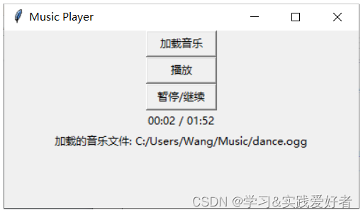 self.file_label = tk.label(self.root, text='加载的音乐文件: ')