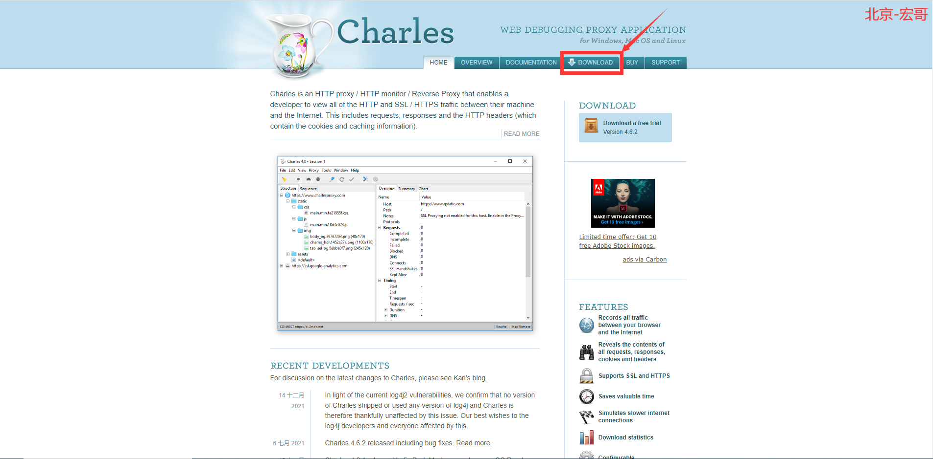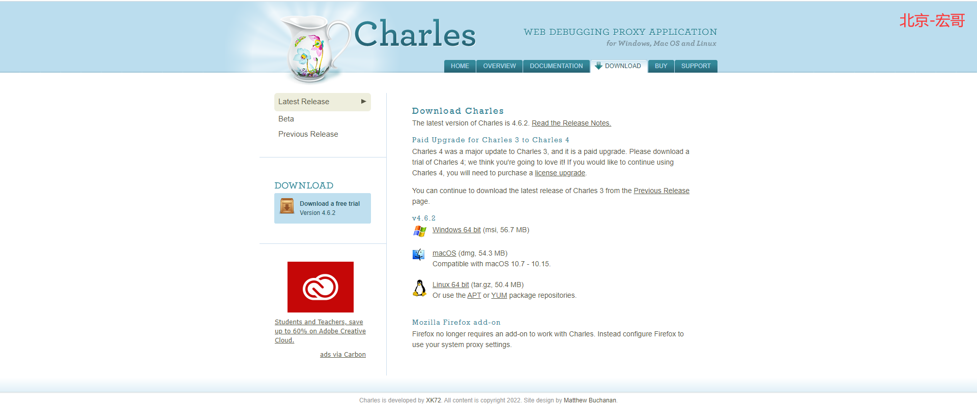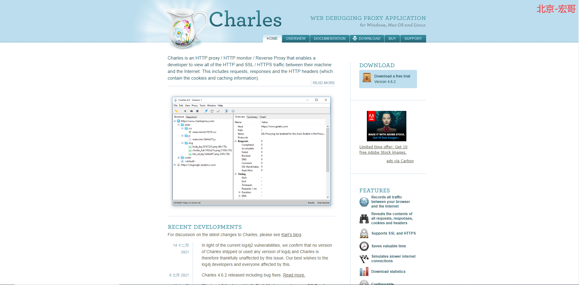 上一篇中宏哥介绍了如何在windows系统安装激活charles(去公众号:北京宏哥,查看上一篇文章),那么使用mac系统的小伙伴或者童鞋们就不高兴了,怎么没有mac的安装激活教程了。宏哥不能厚此薄彼,今天专门补充一篇在mac上安装charles并且将其激活。