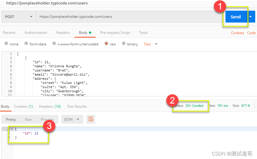 post请求与get请求不同,因为存在用户向端点添加数据的数据操作。使用之前get 请求中相同数据,现在添加我们自己的用户。